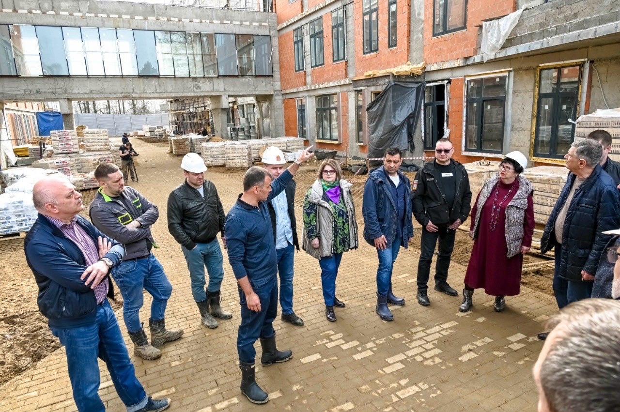 Строительство больницы в Хотькове уже на финишной прямой — в корпусах полным ходом идут отделочные работы, завозится оборудование и мебель. Однако открытыми остались вопросы с парковкой и разбитой строительными большегрузами грунтовой дорогой. Обсудить их с застройщиком, компанией «Родина», на объект приехали депутаты окружного Совета, председатель Общественной палаты Сергиево-Посадского городского округа Мария Борисовна Дайн, представители регионального минстроя и специалисты администрации.