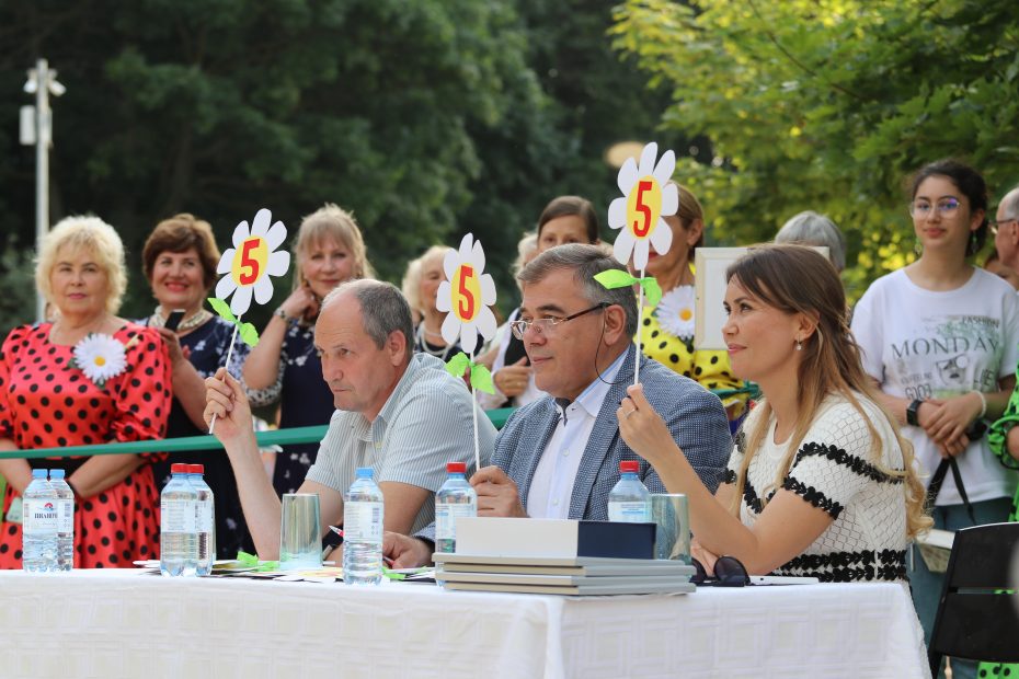 Далее, на сцене амфитеатра жителям показали конкурсную развлекательную шоу — программу «РОМАШКОВОЕ СЧАСТЬЕ», в котором приняли участие четыре семейные пары, которые показывали свои творческие таланты.