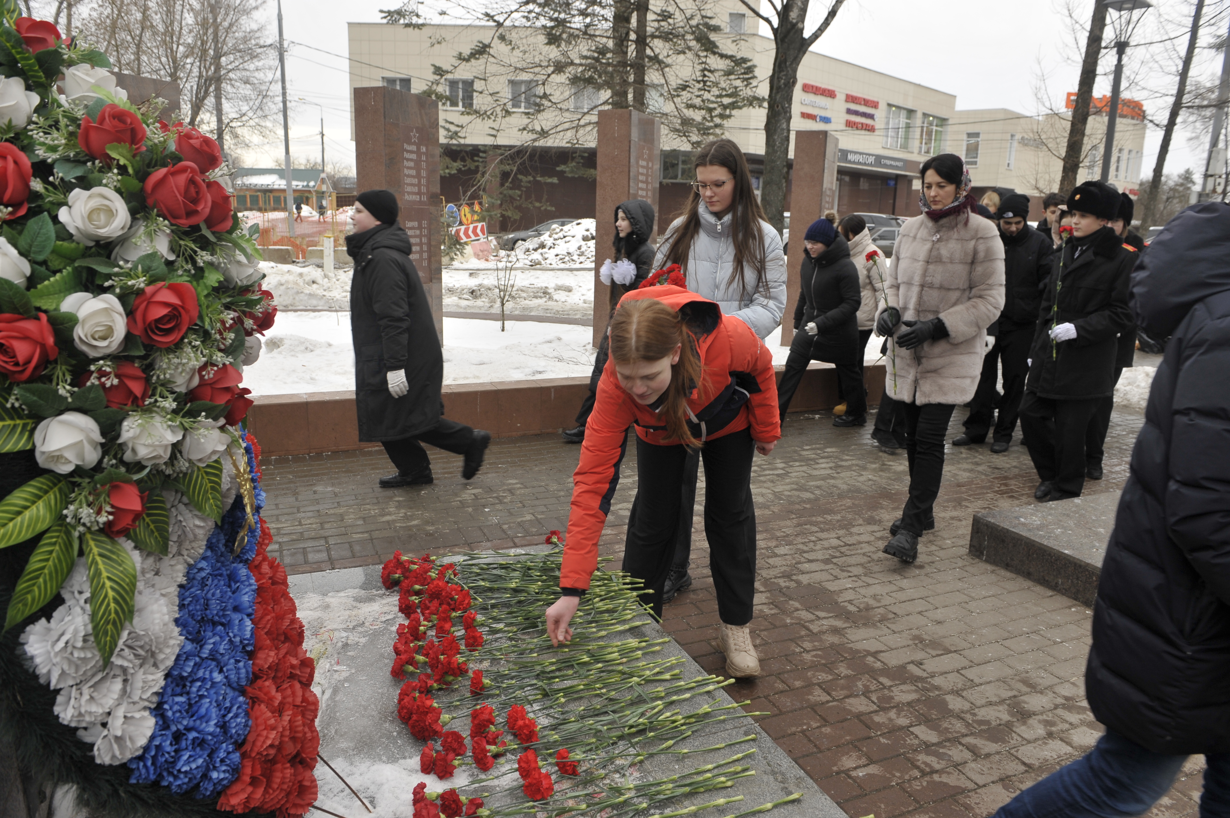 «Мы с вами в святом месте нашего города. Каждый год мы говорим здесь об истории страны и возлагаем цветы, – зампредседателя Совета ветеранов Вера Алёшинская обратилась к подросткам, собравшимся у Вечного огня почтить память павших. – Многие из вас ещё дети, но когда вы подрастёте, тоже будете защищать Родину. В этот день нам важно почувствовать свою внутреннюю силу, мужество и любовь к родной стране». Историю праздника 23 Февраля напомнил молодёжи председатель комиссии по увековечиванию памятников защитникам Отечества при троицком Совете ветеранов Зиновий Деделюк. «Работники Троицкой камвольной фабрики, чьи имена выбиты на стелах мемориала, отдали свои жизни ради нас», – сказал он, предложив ветеранам и детям возложить цветы к памятнику.