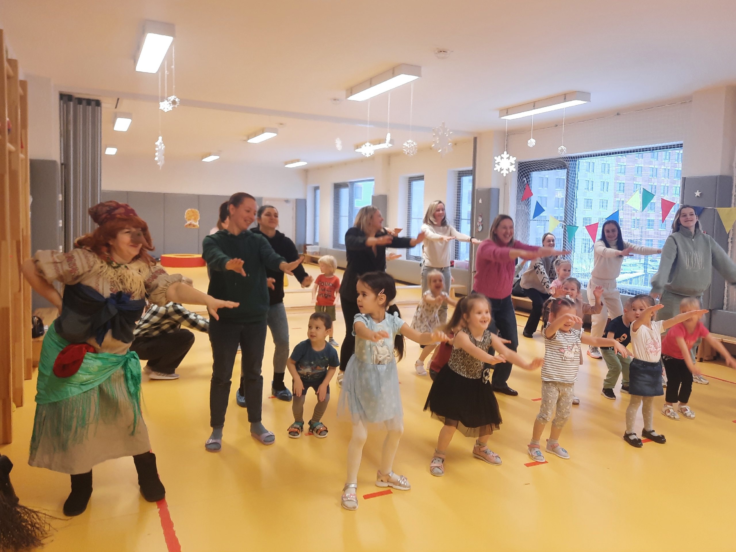 Малыши совместно с родителями разгадали загадки, прошли спортивные испытания, научились делать елочные игрушки и приготовили съедобный снег.