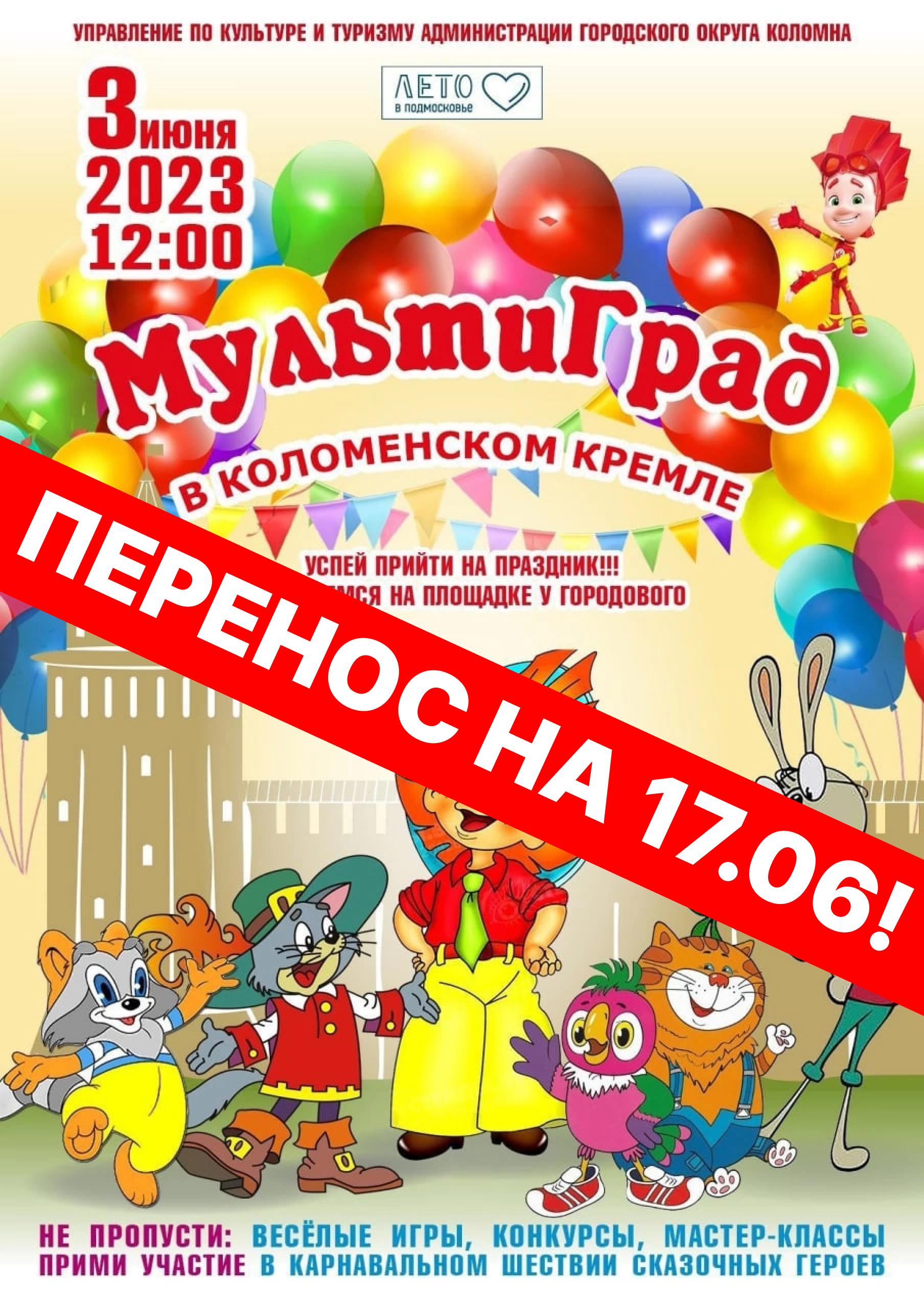 Мы с заботой и вниманием относимся к каждому жителю и гостю нашего округа, поэтому приняли решение перенести третий традиционный фестиваль для детей и родителей «Мультиград» на 17 июня по причине неблагоприятных погодных условий.