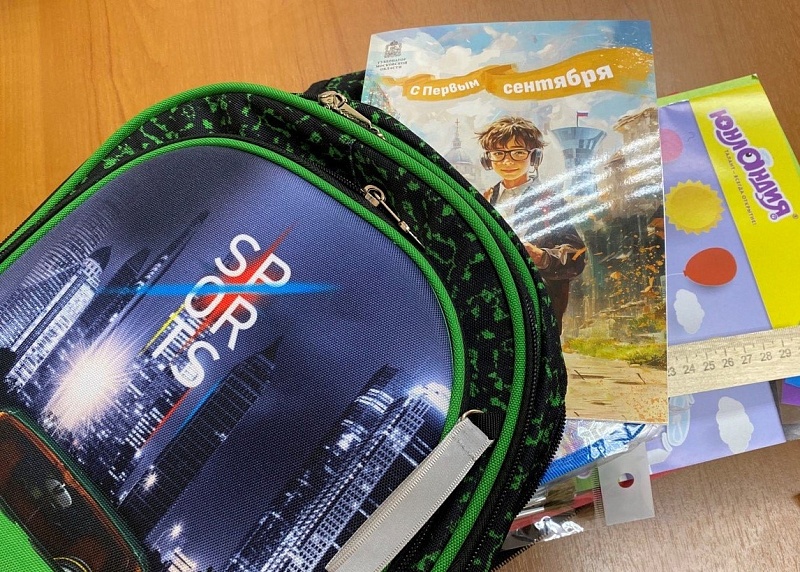 Ребята рады подаркам и готовы к новым знаниям. Для этого в рюкзаках есть все необходимое, что может потребоваться школьнику: тетради, пенал, канцелярия, пластилин.