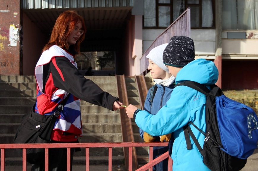 Молодогвардейцы и волонтёры Дзержинского раздали порядка 100 шоколадок жителям города