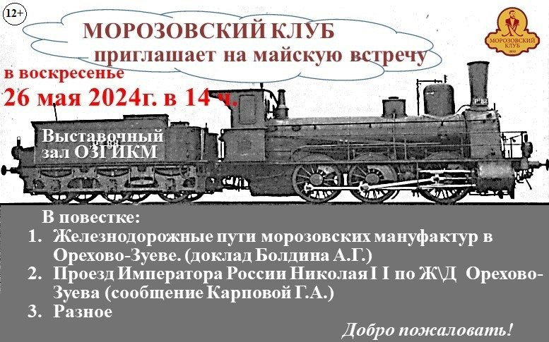 Морозовский клуб приглашает на встречу Она пройдёт завтра, 26 мая, в Выставочном зале в 14:00.