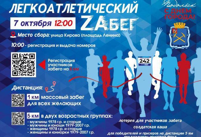Все поклонники физической культуры смогут поздравить Подольск по-спортивному и выйти на дистанцию в один километр. Регистрация участников проводится в день забега.