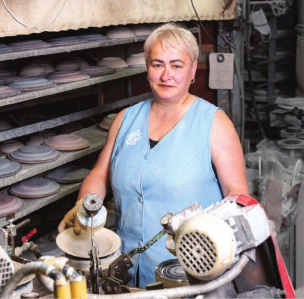 «Работа на этом участке была разнообразной. Хотя у каждого и было своё постоянное рабочее место, часто нас снимали на другие операции и сушилки. Поэтому обучилась многому: овладела литьём, чисткой, формовкой, приставкой. К хреннице «Грань» ручки приставляли, крышку для неё формовали, пипочки к крышке сами приставляли. Мне очень нравилась формовка на полуавтомате, где делали корпус хренницы, крышку к ней, солонки. Довелось и литьё скульптур освоить: делала пуделя с мячиком, цыплёнка, новогодние статуэтки», — рассказала Наталья Егорова.