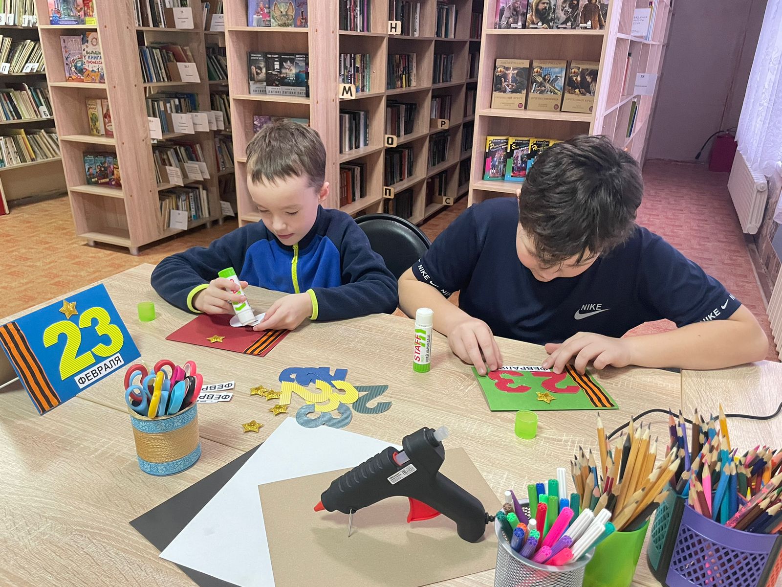 В преддверии Дня защитника Отечества да в Никольской сельской библиотеке Рузского городского округа прошел мастер-класс "Открытка для папы".