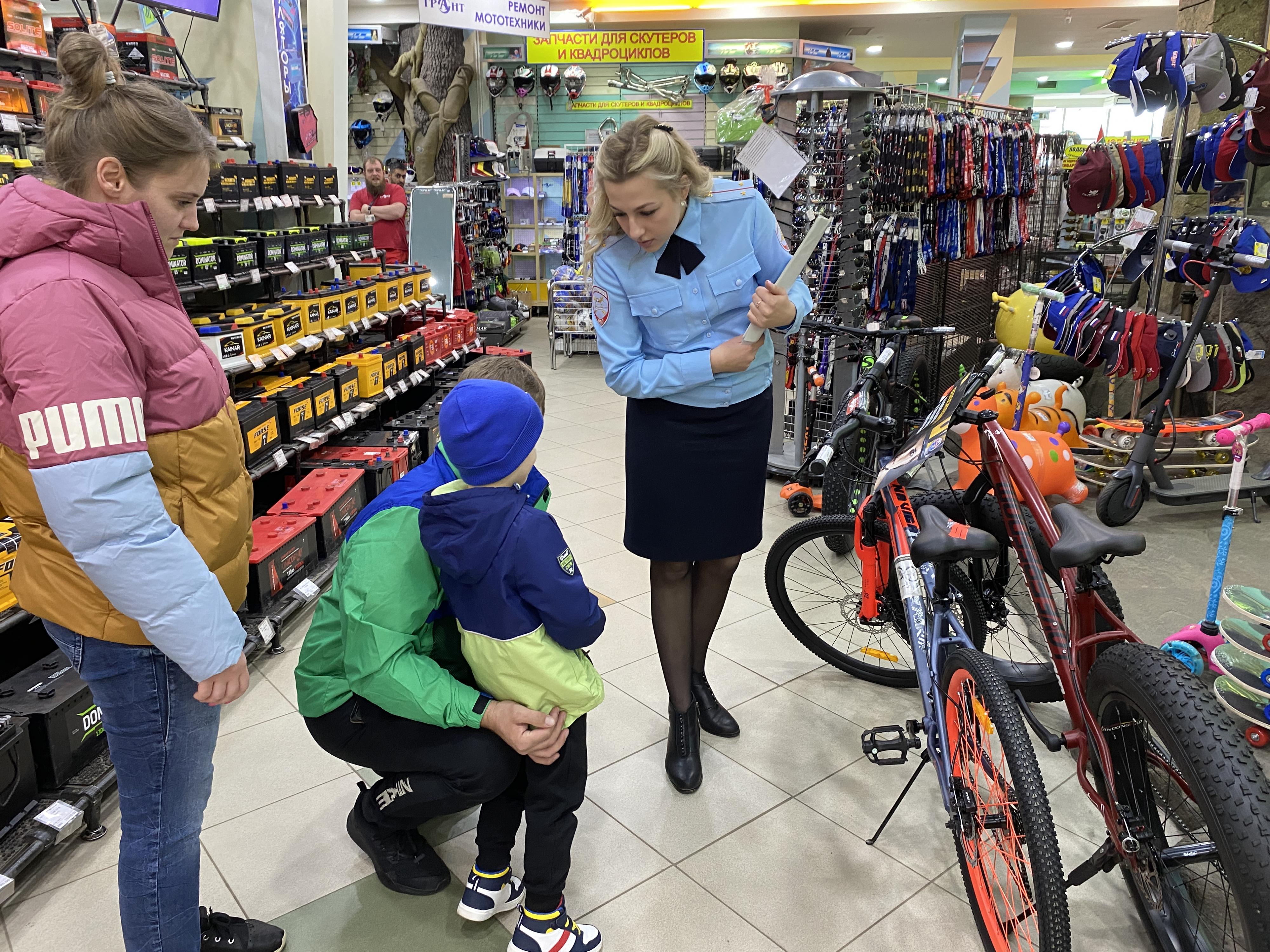 Сотрудники Госавтоинспекции в отделе магазина, где продается велотранспорт, средства индивидуальной мобильности (СИМ) и аксессуары к ним, организовали акцию «Наш друг - велосипед». Полицейские провели разъяснительную работу с посетителями ТЦ на тему обеспечения детской дорожной безопасности, учитывая активное увлечение юных граждан катанием на велосипедах и СИМ с наступлением теплой погоды