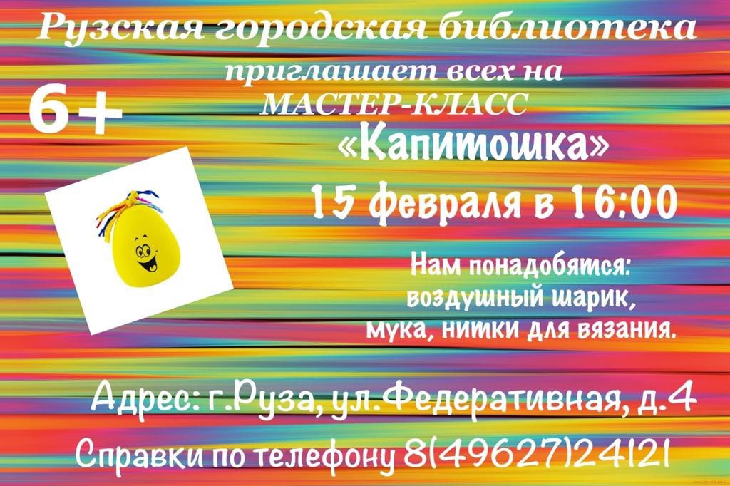 Рузская городская библиотека приглашает детей от 6 лет на мастер-класс «Капитошка» 15 февраля в 16 часов в творческую студию «Чудо-Ручки»