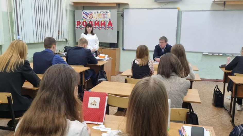 "Разговор о важном" в СОШ №2 г. Куровское Член фракции "Единая Россия" в Совете депутатов Орехово-Зуевского городского округа Сергей Бородин провел "Разговор о важном" в школе №2 города Куровское,