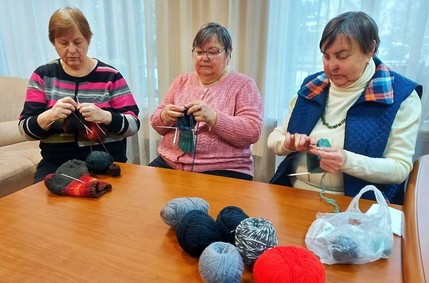 На встречах клуба они вяжут красивые тёплые носки для военнослужащих, пишут трогательные письма со словами поддержки в адрес героев.