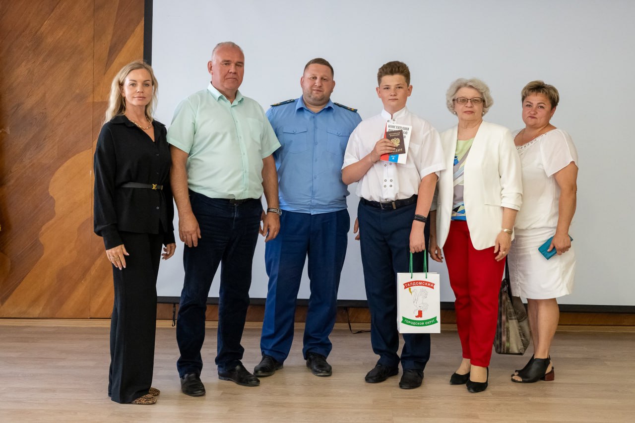 Глава Талдомского округа Юрий Крупенин совместно с Талдомским городским прокурором Русланом Головачевым и депутатами фракции "Единая Россия" тепло поздравил ребят, пожелав достичь успехов в учёбе, а также гордо нести звание гражданина Российской Федерации и внести достойный вклад в развитие страны.