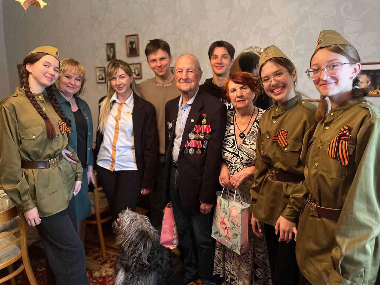 Волонтёры Демиховского лицея поздравили супругов-долголетов с Международным днём семьи и недавно прошедшим Днём Великой Победы.