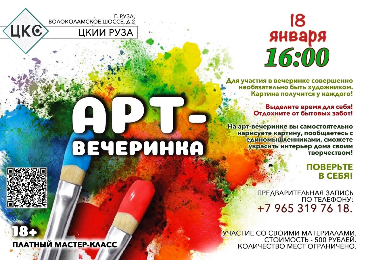 Центр культуры и искусств Рузы приглашает на арт-вечеринку 18 января в 16.00.