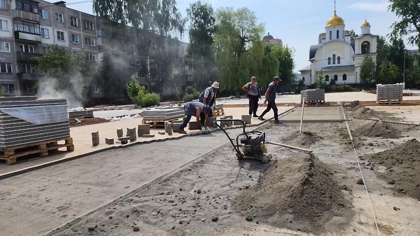 В сквере Защитников Родины в Подольске приступили к мощению трехцветной плитки