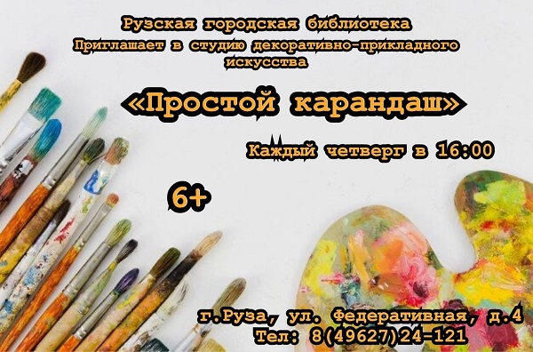 1 февраля состоится занятие в студии декоративно-прикладного искусства «Простой карандаш» Рузской городской библиотеки. Начало в 16 часов.