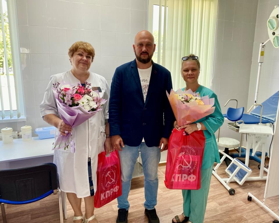 19 июня 2023 года секретарь МК КПРФ, главный редактор газеты «Подмосковная правда» Сергей Стрельцов вместе с секретарем Коломенского ГК КПРФ Эдуардом Ионовым поздравили медицинский персонал ФАП п. Первомайский.