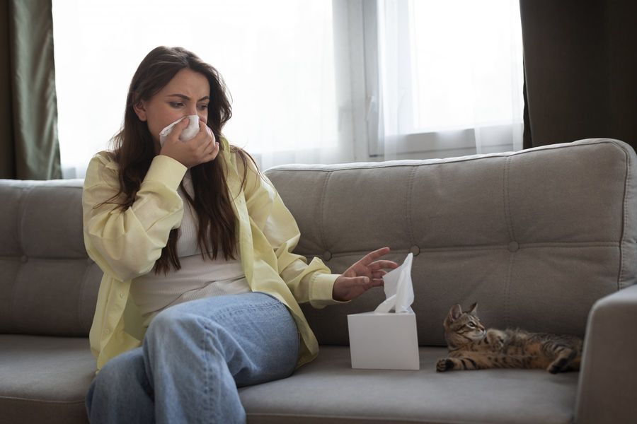 Основные симптомы аллергической реакции — сухость в глазах и покраснение, зуд в носу и полости рта, кашель с насморком и чиханием. Иногда пациенту бывает трудно дышать.